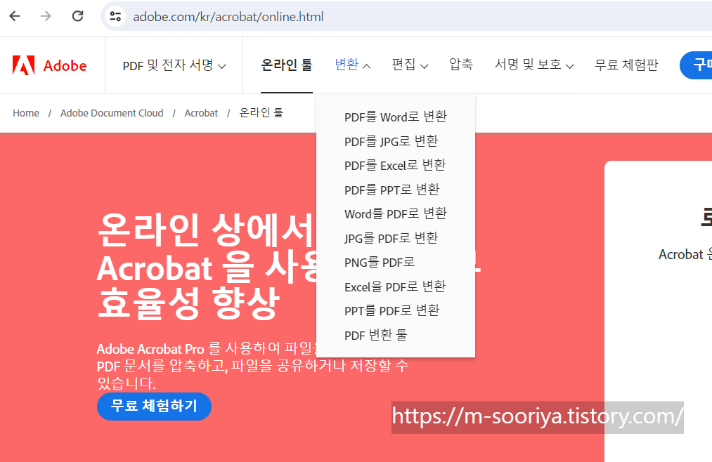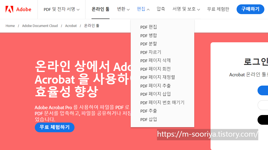 어도비 공식 사이트를 이용하면 각종 PDF 편집 기능도 활용할 수 있는데