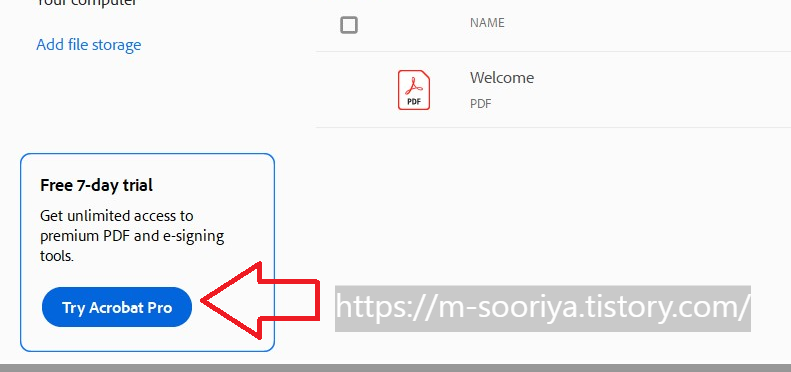홈페이지 하단에서 'Try Acrobat Pro'를 클릭하거나 다음 링크를 통해 시작할 수 있습니다.