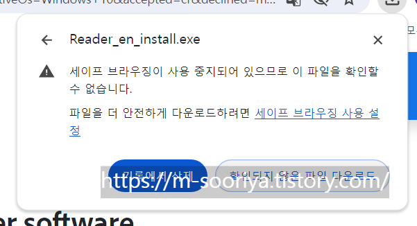 만약 다운로드 도중 경고 메시지가 나타난다면, '확인되지 않은 파일 다운로드' 버튼을 클릭하여 계속 진행하세요.