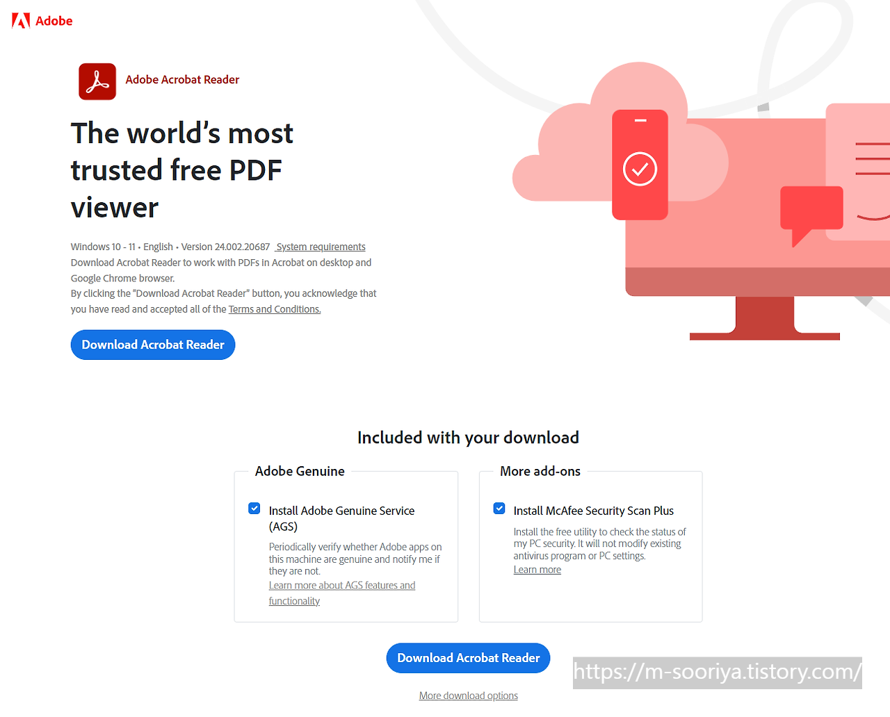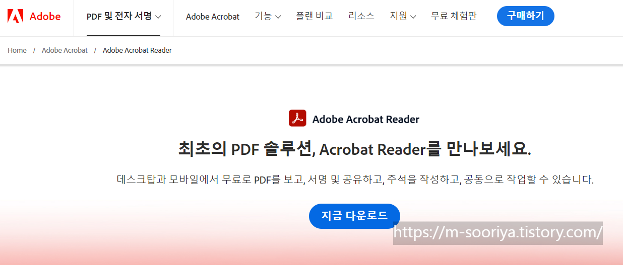 이제 Adobe Acrobat Reader를 다운로드하고 설치하는 과정을 안내해 드립니다.