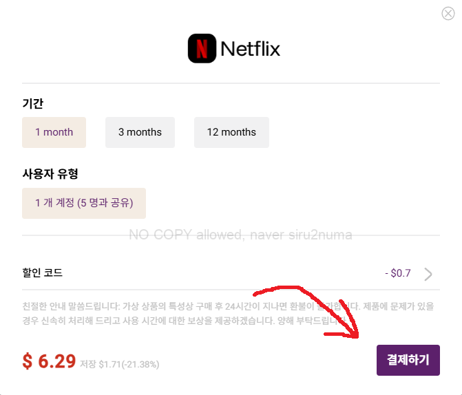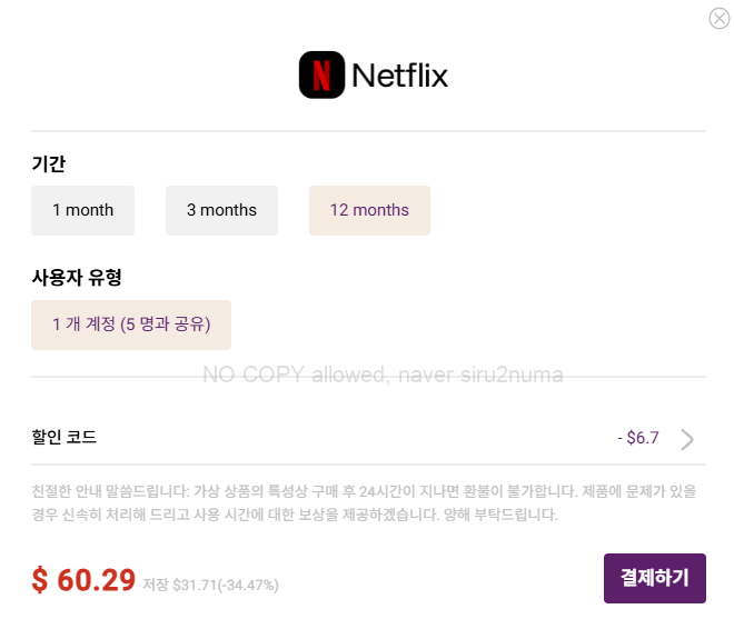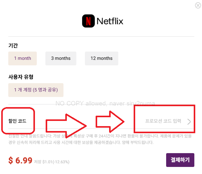 다시 아래 화면이 나타나면 Netflix에서 [지금 구매하기]를 눌러주세요.