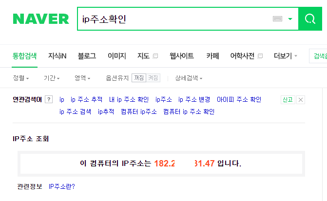 # 1. 네이버에서 "IP주소확인" 검색