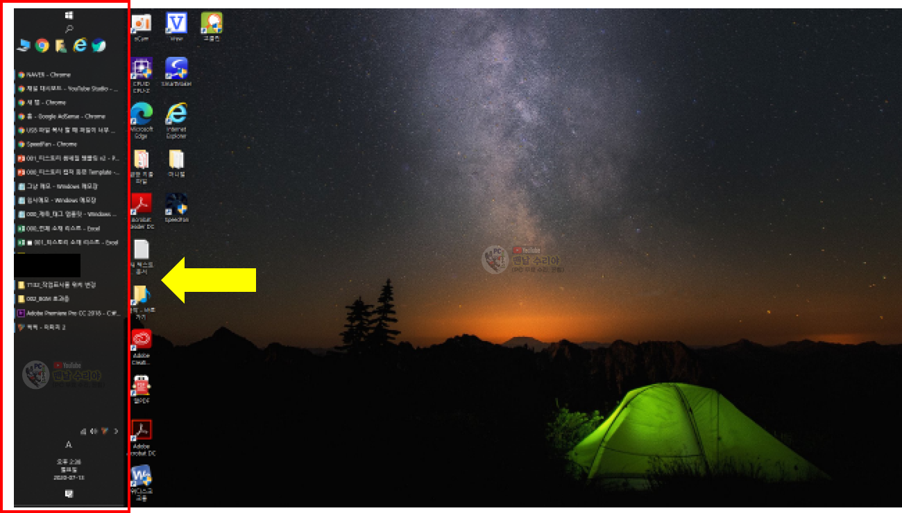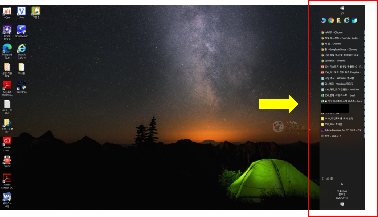 작업표시줄의 위쪽 부분에 [자주 쓰는 아이콘]을 만들면 아주 빠르고 효율적일 것이다.