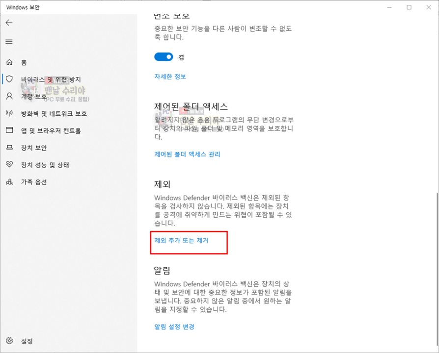 # 방법2) 해당 프로세스 백신검사에서 제외