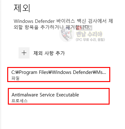 ▶ Antimalware Service Executable 메모리 CPU 낮추는 법 (2/2)