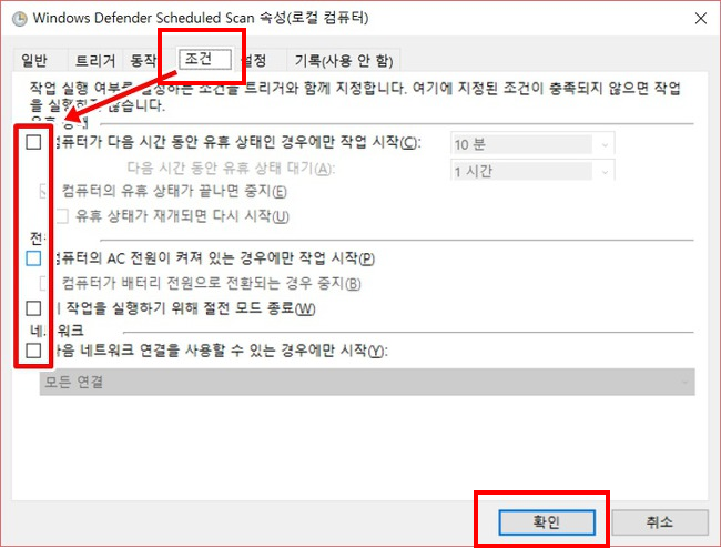 4) 상단 탭 [조건] -> 좌측 체크박스 4가지 전부 해제