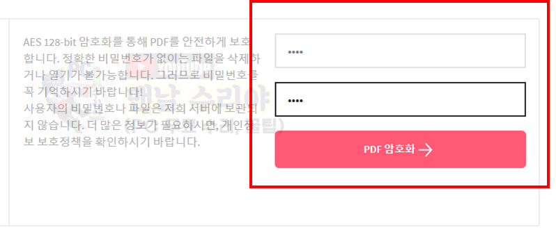 5) PDF 파일에 설정하고 싶은 암호를 입력한다 -> PDF 암호화, 클릭