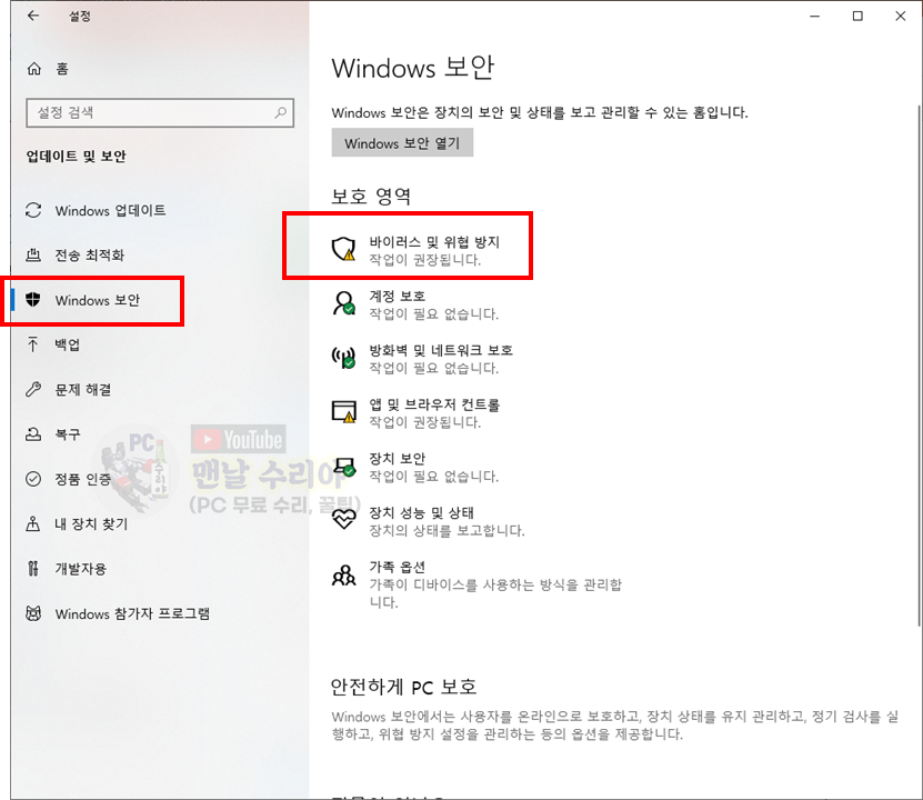 이 윈도우 백신은, 윈도우 버전마다 다른데, 본 포스팅에서는 윈도우10 기준으로 설명을 드릴 예정입니다.