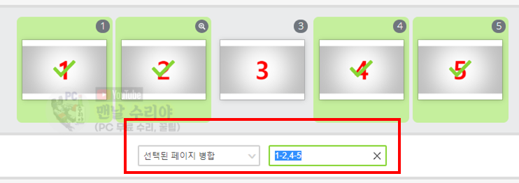 원하는 페이지를 선택하여 합칠 수 있는 것이다.