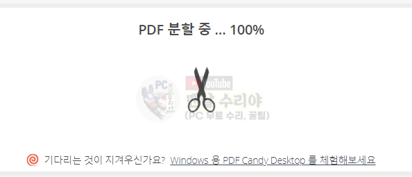 5) 이렇게하여 모든 기능과 설정이 끝났다면, 우측하단의 [PDF 분할] 클릭한다