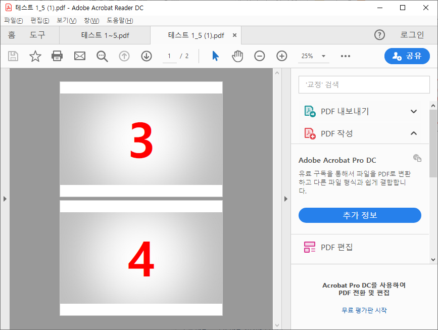 8) 아까 선택한대로 1,2,5가 지워지고 3, 4페이지로 구성된 PDF 파일로 변환된 모습 !