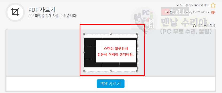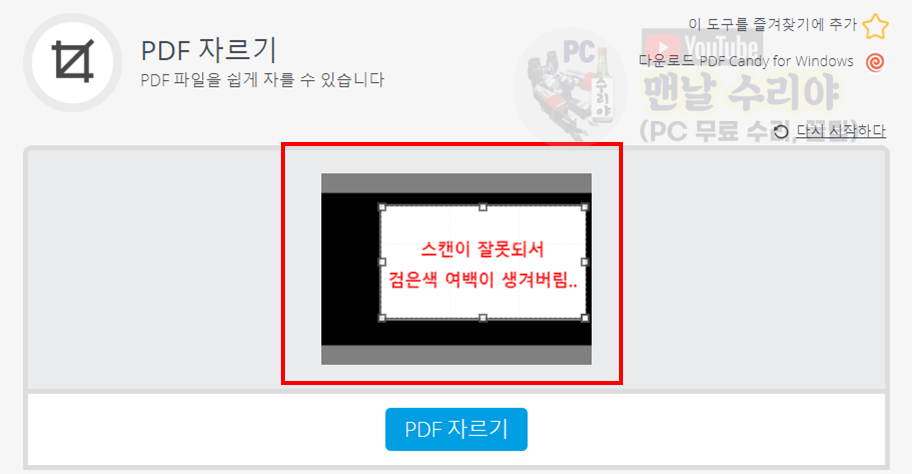 4) 해당 PDF 파일이 보여지며, 테두리의 외곽선을 드래그하며 자르고 싶은 영역을 조절한다