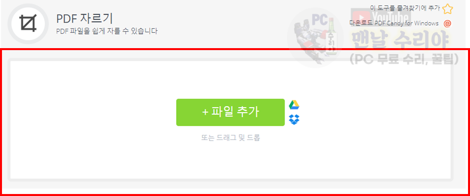 3) 아래의 빨간네모 영역에 여백을 자르고 싶은 PDF 파일을 드래그하여 집어넣는다