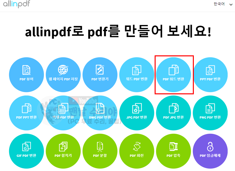 2) 아래의 화면에서 [PDF 워드 변환] 클릭