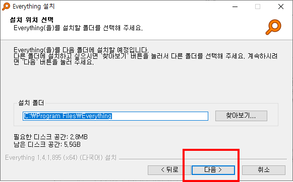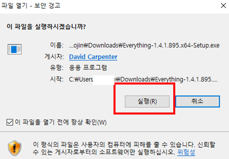 2) 다운로드가 완료된 설치 프로그램 실행 -> 설치 쭉쭉 진행