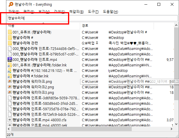 윈도우10이든 윈도우7, 8이든 이 everything 검색 프로그램을 이용하여,