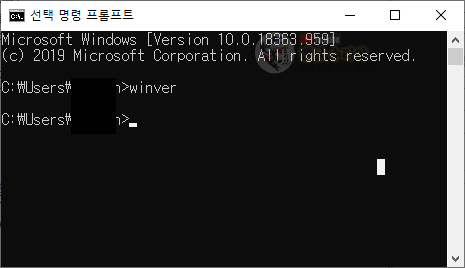 2) 까만창 (명령 프롬프트) 이 나타나는데 winver 입력 후 엔터