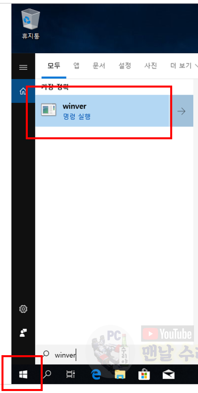 1) 윈도우 시작버튼 -> winver 입력 -> winver 클릭