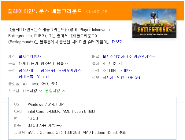 이러한 PC 사양은 보통 인터넷 게임이나 프로그램마다 최소, 권장 사양이 명시되어 있습니다.