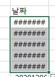 6) 그러면 아래와 같이 날짜가 갑자기 ####으로 바뀌는데, 이는 "-"가 추가되어 기존의 열 너비보다 넓어졌기 때문이다.