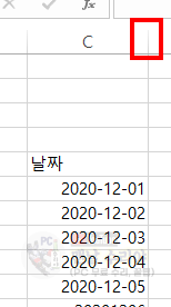 7) 해당 열의 제목부분 끝을 마우스로 클릭하여 너비를 넓혀주면, "-"가 추가된 날짜 형식으로 변환된것을 볼 수 있다.