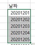 1) 아래와 같이 날짜 형식을 바꾸려는 데이터 영역을 드래그하여 선택하자