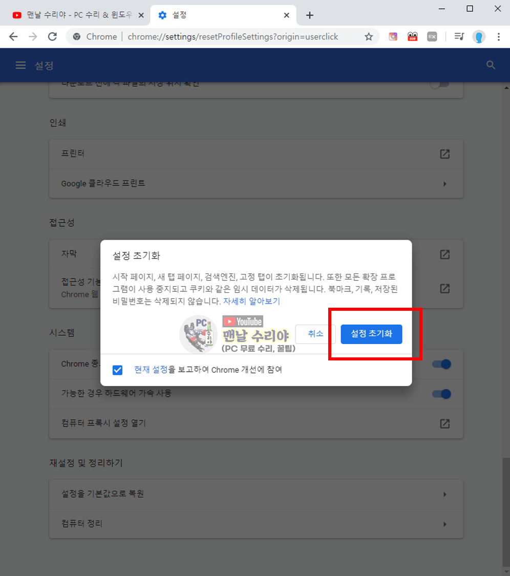 그래서 오늘은 구글 크롬, 인터넷 옵션 초기화 방법을 설명드리고자 합니다.