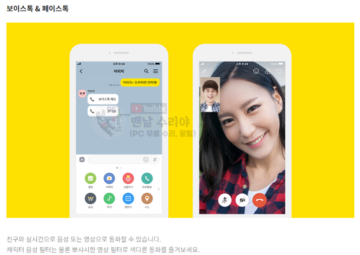 채팅은 다 아실테고, 보이스톡은 외국에 있는 사람과 무료로 통화할 수 있는 기능이다.
