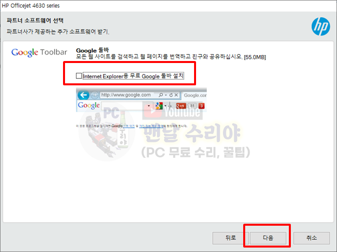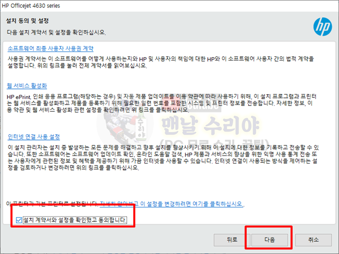 9) 이제부터는 프린터의 제조년월이나 기종, 모델명에 따라 설치화면이 다를 수 있다.