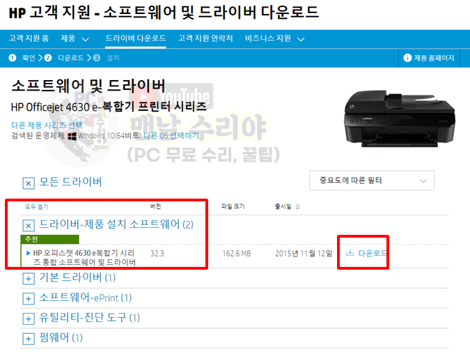 HP 프린터 및 복합기 드라이버 다운로드 방법
