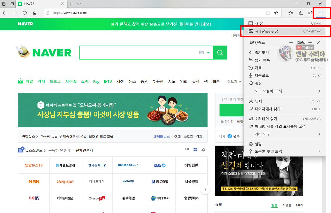 6) 끝으로, 마이크로소프트 엣지 (Edge) 시크릿 모드를 소개한다.