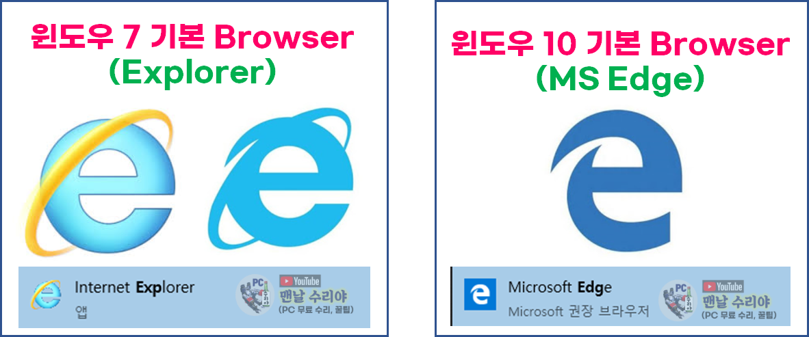 기존 윈도우7의 기본 브라우저는 Explorer 입니다.