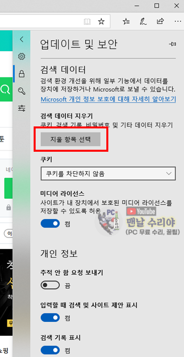 ※ (2020년) Microsoft Edge 브라우저, 인터넷 사용 기록 삭제 방법
