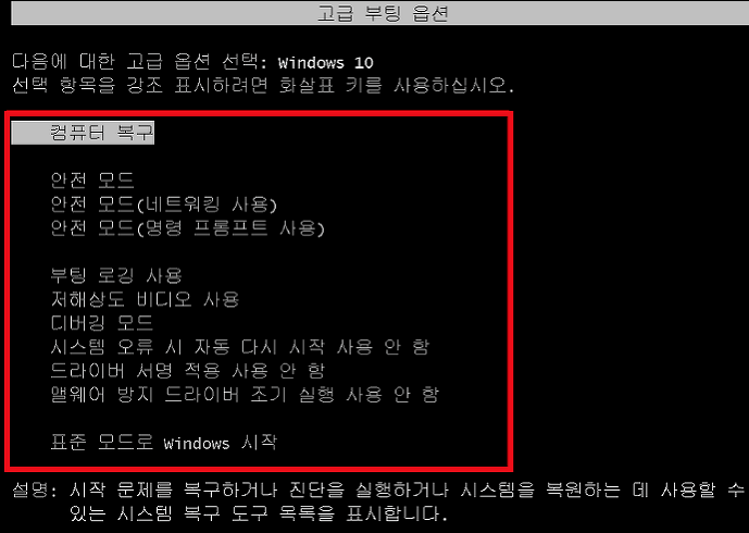 한마디로, 내 컴퓨터의 오류를 점검할 수 있는 점검 모드라고 보면 되겠다.