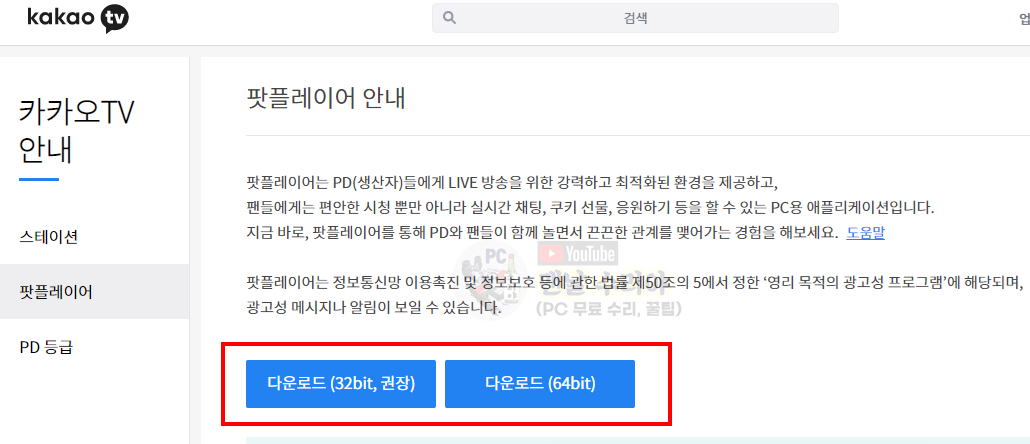 카카오TV, 다음 팟 플레이어 다운로드 & 설치방법