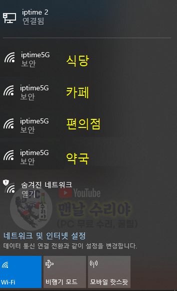 하나의 상가 건물안에, 여러가지 상점이 있는데, 와이파이 이름이 전부 iptime5G 라면 ??