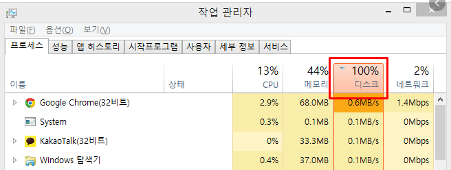 ▶ C드라이브 용량 많은데, 작업관리자 디스크 점유율 100% 일 때 해결법