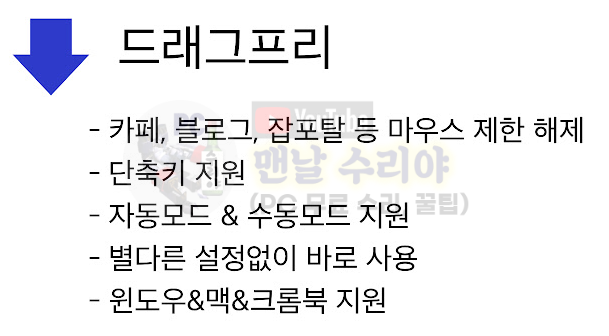 * 아래에 보면, 드래그프리에 대한 설명이 나온다.