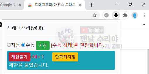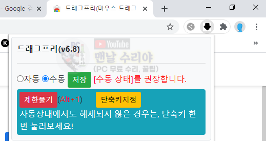 그러니, 자신이 작업하고자 하는 사이트에서 [드래그프리]를 실행해야 한다.