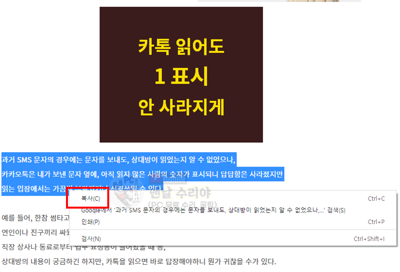 포털사이트나 카페, 블로그등에서 해당 텍스트를 드래그해서 복사하고 싶은데, 드래그나 우클릭 자체가 안될 것이다