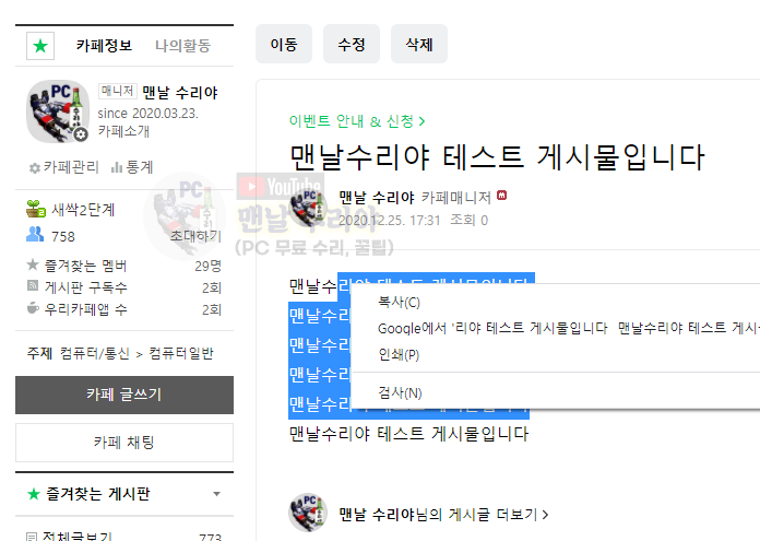 유튜브를 구독하시면, 각종 PC 문제를 100% 무료로 도와드리니까, 꼭 참고해보시기 바랍니다.