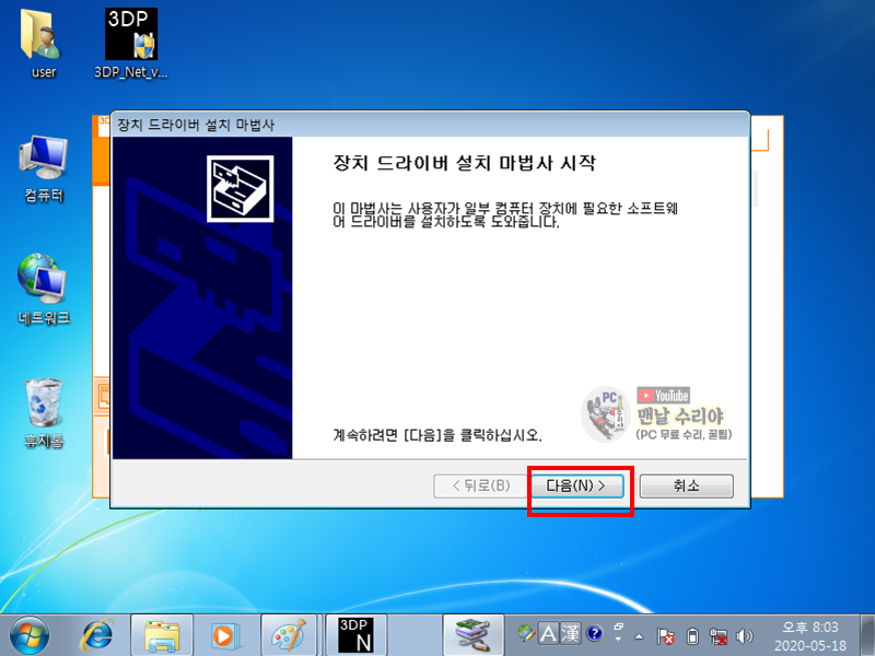 2) 다운받은 3DP Net을 설치한다 (보통, 내 문서 - 다운로드 폴더에 있을것이다)