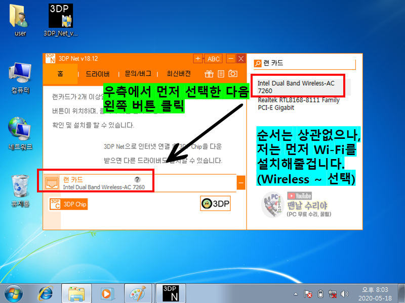 그래서 PC를 조금 다룰줄 아는 사람들은, 3DP Net이라는 드라이버 자동설치 프로그램을 사용한다.