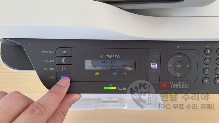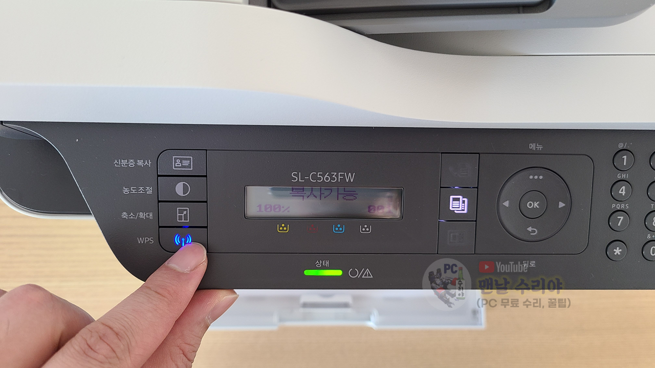 아래와 같이, 복합기의 전원을 켜주고, WPS 버튼을 누른다
