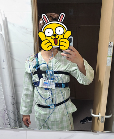 아래 사진처럼 몸에 각종 검사기와 밴드를 부착하는데, 마치 군대의 X-반도 같다