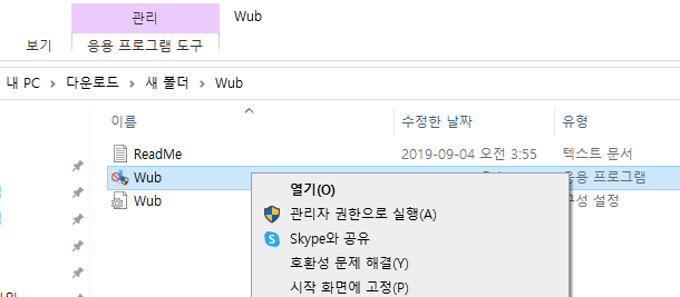 3) Wub 프로그램에서 마우스 우클릭 > 관리자 권한으로 실행 클릭