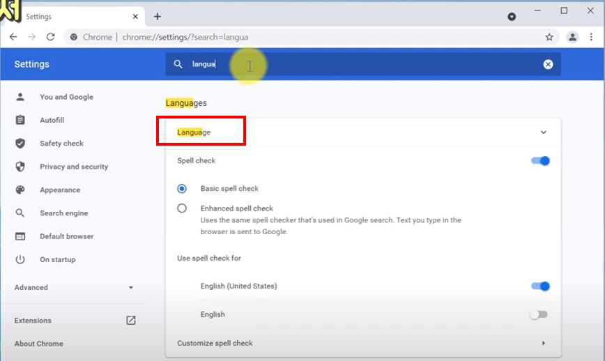2) 설정화면의 검색창 (search settings)에 language 를 입력합니다