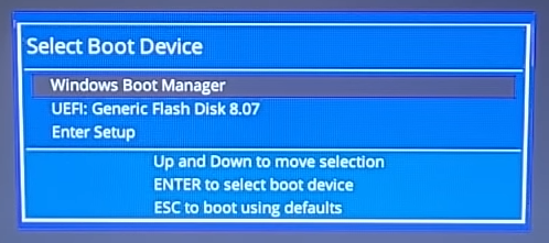 제 USB는 [Generic Flash Disk 8.07]이라 키보드 방향키로 이동후 ENTER를 눌러 부팅하였습니다.