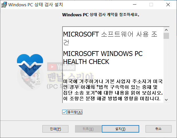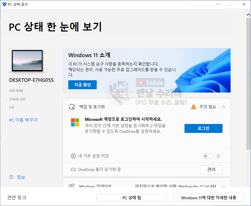 5) 그 다음 [PC 상태 검사 앱 다운로드]를 눌러, 프로그램을 다운받고 실행합니다.