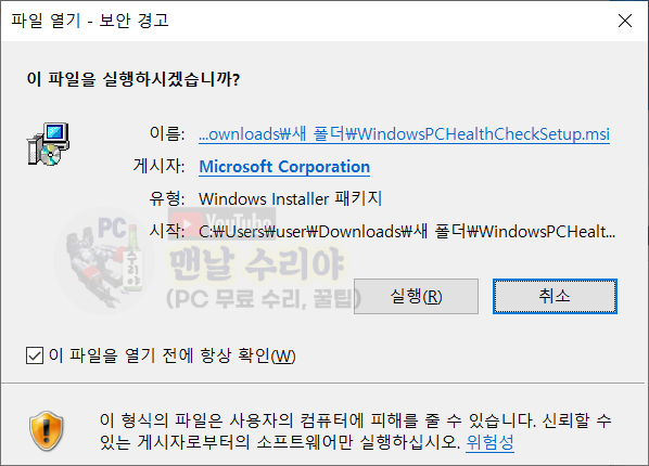 ▼ 윈도우11 호환성 체크 프로그램 다운로드